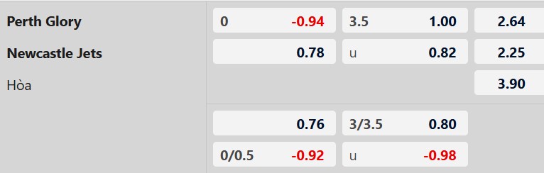 Lẻ bàn thắng: 8/10 trận gần đây của Perth Glory kết thúc với tổng số bàn thắng là số lẻ. Tình trạng tương tự xảy ra ở 5 trận vừa qua của Newcastle Jets.