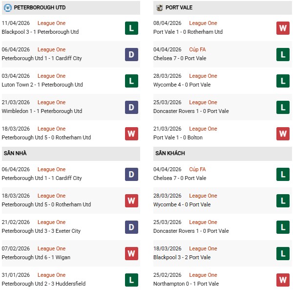 - Trên sân nhà, Peterborough thắng 5, thua 1 trước Port Vale.