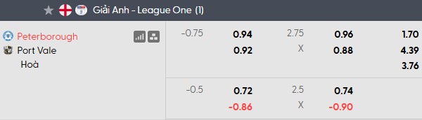 Mức chấp 3/4 bàn cho thấy Peterborough được đánh giá cao hơn đáng kể. Với lợi thế sân nhà cùng quyết tâm tích lũy điểm số để sớm trụ hạng, đội chủ nhà hoàn toàn có thể hướng tới một chiến thắng trước đối thủ đang sa sút nghiêm trọng.