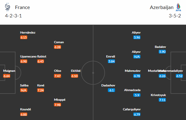 Pháp vượt trội toàn diện cả về chất lượng đội hình, phong độ và kinh nghiệm. Do đó, hoàn toàn dễ hiểu khi đoàn quân của Deschamps đang được đánh giá cao hơn rất nhiều cùng tỷ lệ chấp lên đến 4 bàn. Mức chấp cực lớn nhưng rõ ràng tuyển Pháp ở thời điểm hiện tại với lợi thế sân nhà có thừa khả năng hủy diệt Azerbaijan và thắng luôn kèo đấu châu Á ngay sau 90 phút.