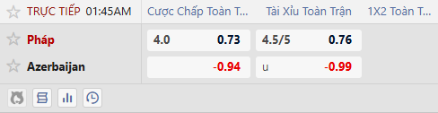 6 bàn thua sau 2 trận, trong đó có đến 5 bàn ở trận gặp Iceland cho thấy hàng thủ quá mong manh của Azerbaijan. Thống kê 4 bàn sau 2 trận có lẽ chưa phải quá thuyết phục của đội Pháp. Ở thời điểm hiện tại, rõ ràng khi dàn trụ cột quan trọng đang vào form, dù không chơi quá quyết liệt, Pháp vẫn có thừa khả năng vùi dập Azerbaijan. Vậy nên, mức kèo tài xỉu 4 3/4 vẫn là khá phù hợp dành cho sự xuất hiện của kèo Tài sau 90 phút.
