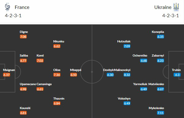 Không đội nào giữ sạch lưới nhà: 3/4 cuộc đối đầu gần nhất đều khép lại với ít nhất 1 bàn thắng cho mỗi đội. Bên cạnh đó, Pháp luôn ghi bàn ở 7 trận gần đây và Ukraine cũng làm được điều tương tự ở 6 trận vừa qua. Xem ra, trận này sẽ khép lại mà không đội nào giữ sạch lưới nhà.