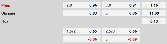 Chủ nhà Pháp được đánh giá cao hơn rất nhiều với kèo chấp lên đến 2 hòa cả trận. Pháp có nhiều lợi thế, từ sân nhà, thành tích đối đầu, phong độ gần đây đến lực lượng, để có thể hạ gục Ukraine và giành vé sớm tới Bắc Mỹ vào mùa Hè năm sau. Tuy nhiên, sẽ không dễ để Pháp vượt qua mức kèo cao trận này và Ukraine sẽ là lựa chọn đáng tin cậy hơn ở mảng kèo châu Á.