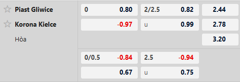 - Piast Gliwice thắng 6, hòa 4 trong 10 trận gặp Korona Kielce gần đây.