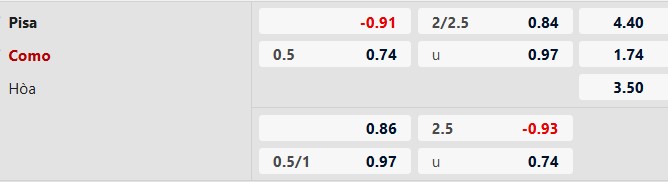 Chẵn bàn thắng: 5 lần chạm trán giữa 2 đội gần đây kết thúc với tổng số bàn thắng là số chẵn. Tình trạng tương tự xảy ra ở 5/7 trận gần đây của Pisa và 10/13 trận vừa qua của Como.