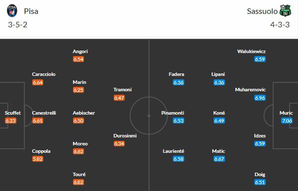 Dù phong độ của Sassuolo lúc này không thể nói là tốt (thắng 1/8 trận gần nhất) nhưng họ vẫn đang xếp thứ 11, cách rất xa khu vực nguy hiểm. So với thứ bóng đá nghèo nàn của Pisa, Sassuolo gây được chút ấn tượng bởi hàng công biến hóa.