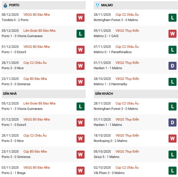Malmo không thua Porto trên sân của đối thủ đã là thành công vượt bậc chứ đừng nói gì đến chiến thắng. Phía đối diện, Porto đang sở hữu phong độ rất cao dưới mái vòm Dragao từ đầu mùa 2025/26: thắng đến 8/10 trận trên mọi đấu trường (4 trận tối thiểu 2 bàn). Như vậy, Porto chẳng những sẽ thâu tóm trọn vẹn 3 điểm mà khả năng cao còn phải thắng trên 1 bàn mới xứng tầm tương quan chuyên môn giữa đôi bên.