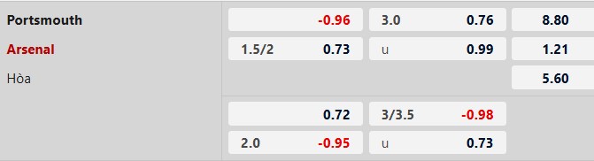 Tỷ số lẻ: 4/5 trận gần nhất giữa Arsenal và Portsmouth kết thúc với tỷ số lẻ. 6/8 trận vừa qua của Portsmouth và 3/4 trận gần nhất của Arsenal cũng có số bàn thắng không chia hết cho 2.
