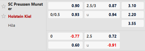 Preussen Munster cho thấy khả năng tấn công khá tốt khi ghi ít nhất 2 bàn ở 3/5 trận gần nhất. Tuy nhiên, hàng thủ của họ lại thiếu chắc chắn khi để lọt lưới từ 2 bàn trở lên trong 4 trận liên tiếp. Ở chiều ngược lại, Holstein Kiel đang gặp vấn đề lớn trên hàng công khi chỉ ghi nhiều nhất 1 bàn trong 5 trận vừa qua, khiến khả năng bùng nổ bàn thắng của đội khách bị đặt dấu hỏi.