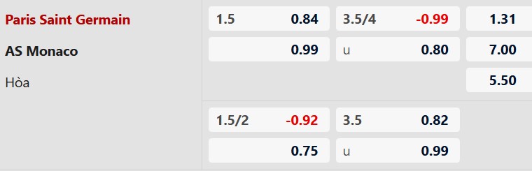 Soi kèo châu Á PSG vs Monaco: