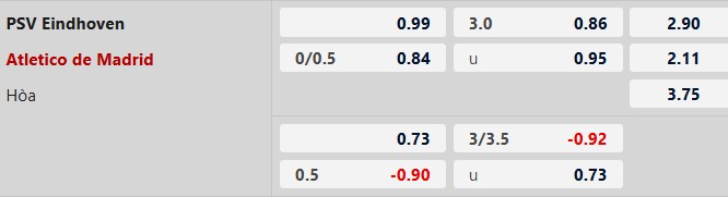 Chẵn bàn thắng: 3/4 lần gặp giữa 2 đội gần đây kết thúc với tổng số bàn thắng là số chẵn. 4/5 trận gần đây của PSV tại Champions League và 5/7 trận sân khách vừa qua của Atletico xảy ra tình trạng tương tự.
