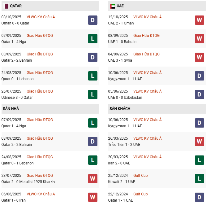 - Trên sân nhà, Qatar thắng 3, thua 2 trước UAE.