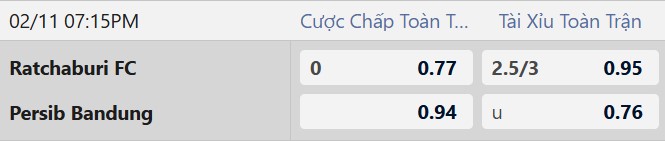 Lẻ bàn thắng: 4/5 trận gần nhất của Ratchaburi có số bàn thắng lẻ. 3/4 trận gần nhất của Persib Bandung cũng có số bàn thắng lẻ.
