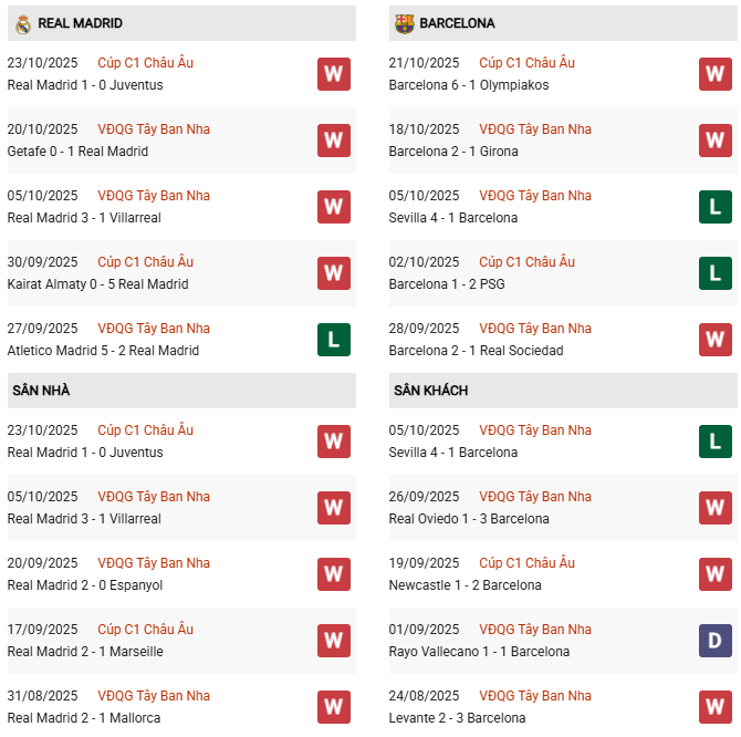 Barcelona dù đứng thứ hai nhưng lại có dấu hiệu bất ổn. Hai thất bại trong 4 trận gần nhất phơi bày vấn đề ở hệ thống phòng ngự, đặc biệt trong những trận sân khách. Chuỗi 4 trận xa nhà gần đây của họ chỉ mang về 2 thắng, 1 hòa và 1 thua, trong đó có thất bại 1-4 trên sân Sevilla và trận hòa 1-1 trước Rayo Vallecano – những đối thủ không thuộc nhóm dẫn đầu. Cùng với đó, việc thiếu vắng nhiều trụ cột khiến tuyến giữa của họ dễ bị Real Madrid áp đảo.