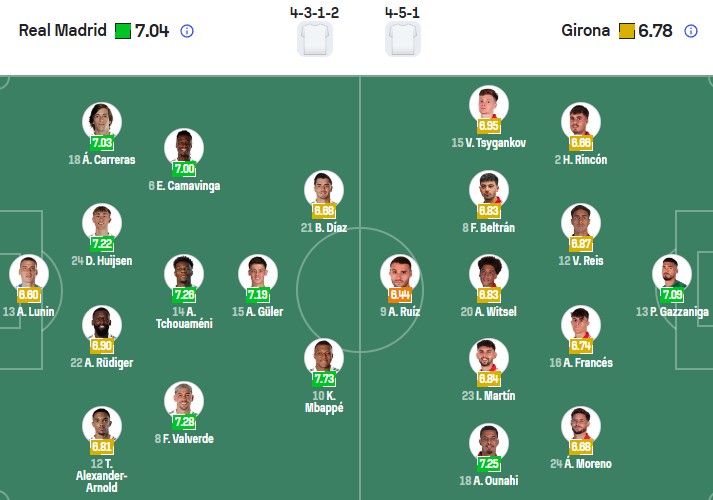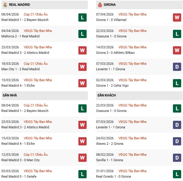 - Trên sân nhà, Real Madrid thắng 4, thua 1 trước Girona.
