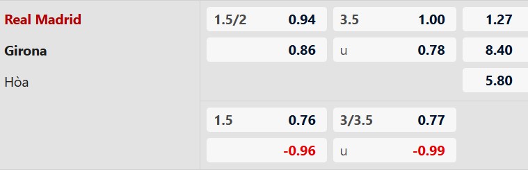 Mốc tài xỉu 3 1/2 là khá cao, phản ánh kỳ vọng vào thế trận cởi mở. Tuy nhiên, Real Madrid gần đây không duy trì được hiệu suất ghi bàn quá bùng nổ, trong khi Girona thường chơi khá thận trọng khi làm khách trước các đội mạnh. Khả năng trận đấu bùng nổ bàn thắng là không quá cao.