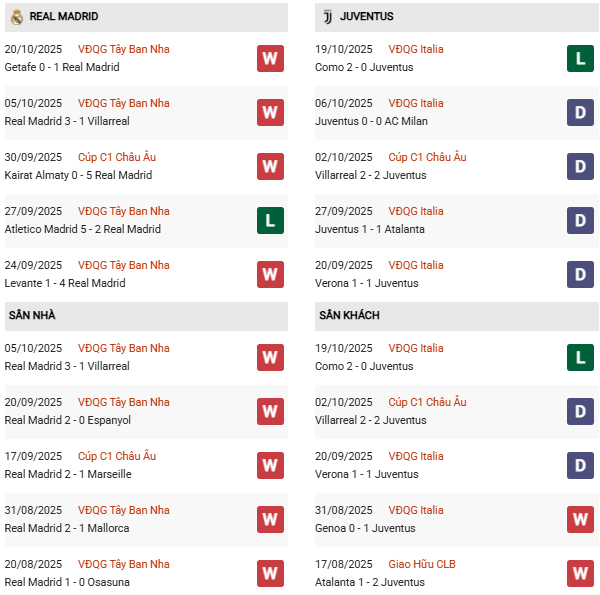 - Trên sân nhà, Real Madrid thắng 6, thua 2 trước Juventus.