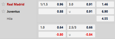 Real Madrid được đánh giá cao hơn hẳn khi chấp 1 1/4 bàn cả trận. Phong độ của Los Blancos hiện tại gần như không thể ngăn cản – họ đã thắng tới 9/10 trận gần nhất trên mọi đấu trường. Ngược lại, Juventus đang trải qua chuỗi ngày ảm đạm khi đã 6 trận liên tiếp không biết đến mùi chiến thắng. Với lợi thế sân nhà cùng phong độ hủy diệt, Real Madrid hoàn toàn có thể tạo ra một chiến thắng cách biệt.