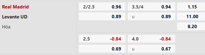 Lẻ bàn thắng: 3/4 lần đối đầu giữa 2 đội gần đây trên sân của Real Madrid đều kết thúc với tổng bàn thắng là số lẻ. 6/8 trận gần đây của Real Madrid và 4/5 trận vừa qua của Levante tương tự.