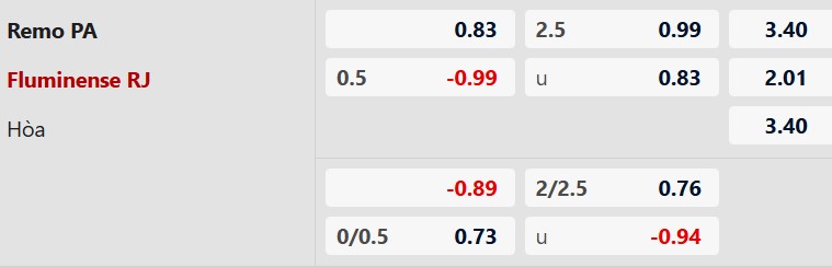 Mức kèo Fluminense chấp 1/2 bàn cho thấy đội khách được đánh giá cao hơn nhờ chất lượng đội hình và phong độ tổng thể tốt hơn. Tuy nhiên, lợi thế sân nhà của Remo có thể giúp trận đấu trở nên cân bằng hơn so với dự đoán.