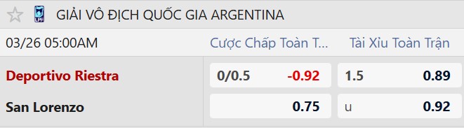 Riestra chấp 1/4 bàn là mức kèo tương đối bất ngờ nếu nhìn vào vị trí và phong độ của hai đội. Dù có lợi thế sân nhà, nhưng với việc chưa thắng trận nào từ đầu mùa cùng hàng công kém hiệu quả, Riestra khó tạo ra khác biệt. Trong khi đó, San Lorenzo dù chưa thực sự ổn định nhưng vẫn sở hữu sự lì lợm cần thiết để hướng tới kết quả thuận lợi.