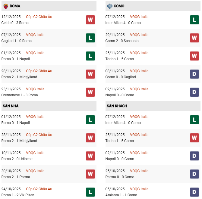 Hiệp 1 có bàn thắng: 10/12 trận gần nhất của Roma có bàn thắng trong hiệp 1. 8/11 trận vừa qua của Como cũng chung diễn biến.