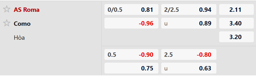 Como chắc chắn sẽ gây ra rất nhiều khó khăn cho Roma nhưng với điểm tựa sân nhà, đại diện thủ đô khó lòng bỏ lỡ 3 điểm.