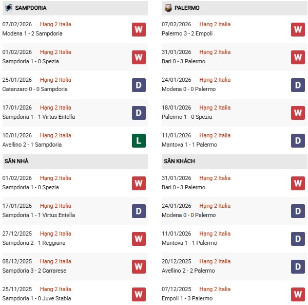 Sampdoria có lợi thế sân nhà nhưng thường gặp nhiều khó khăn khi đối đầu các đội thuộc nhóm đầu bảng. Trong bối cảnh Palermo đang duy trì chuỗi bất bại dài và rất cần điểm để bám đuổi cuộc đua thăng hạng, lựa chọn đội khách vẫn được đánh giá an toàn hơn.