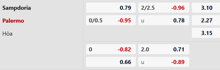 Thông tin tỷ lệ kèo Sampdoria vs Palermo: