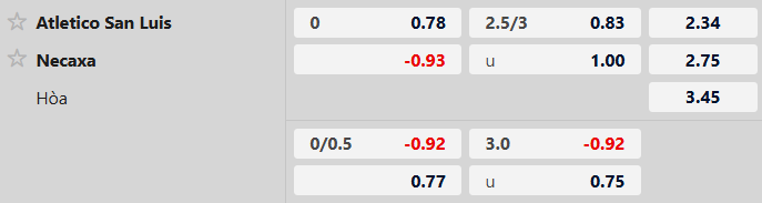 Necaxa thủng lưới ít nhất 2 lần ở 7/8 chuyến làm khách mới đây thuộc giải VĐQG Mexico. Dẫu vậy điều tích cực là chỉ vài hôm trong số đó họ tịt ngòi. Phía đối diện, San Luis đã phải nhận bàn thua ở 8/9 trận sân nhà vừa qua tại đấu trường Liga MX. Với chất lượng phòng ngự như vậy thì trận tới hứa hẹn sẽ nhiều bàn, giống 6/7 cuộc so tài cao thấp gần nhất giữa hai đội.