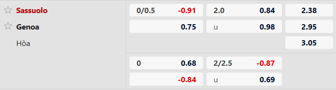 Trong hơn 10 năm qua, Genoa chỉ có 2 lần ca khúc khải hoàn rời sân Sassuolo sau 10 lần đến đây. Kịch bản cũng khó lòng khác đi sau trận đấu này. Bên cạnh đó, Sassuolo chỉ thua châu Á có 2/8 trận chính thức gần nhất. Trong khi đó, Genoa thua châu Á 4/5 trận vừa qua.