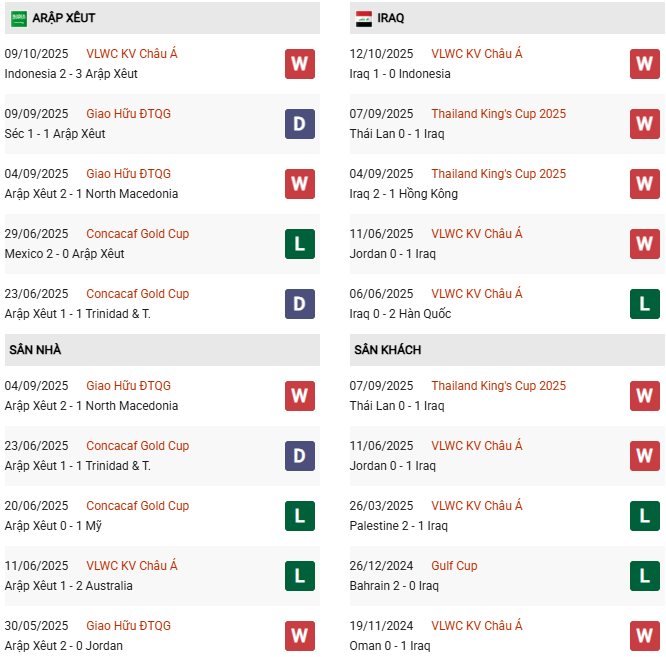 - Trên sân nhà, Saudi Arabia thắng 3, thua 4 trước Iraq.