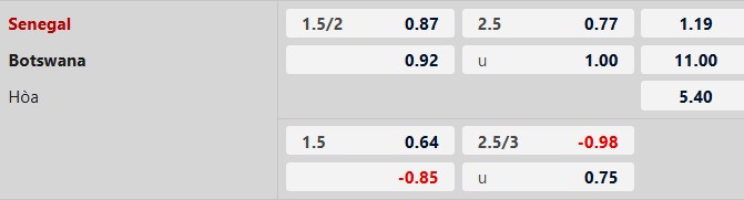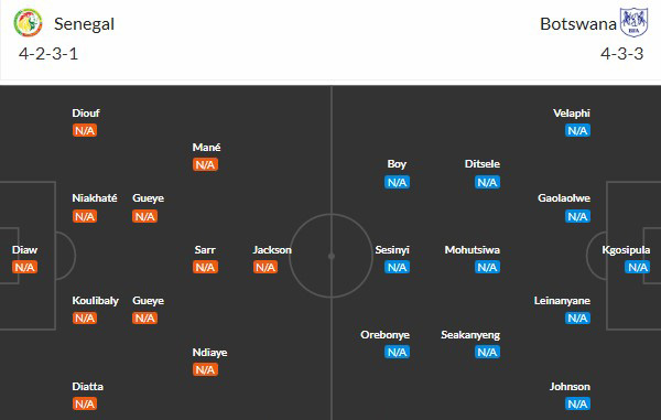 So về đối đầu, Botswana mới gặp Senegal 2 lần nhưng đều thua. Ngoài ra, Senegal có kinh nghiệm, đội hình thiện chiến và là một trong những ứng viên vô địch. Nhiều khả năng, Senegal sẽ có 3 điểm ở lượt thi đấu thứ nhất này.