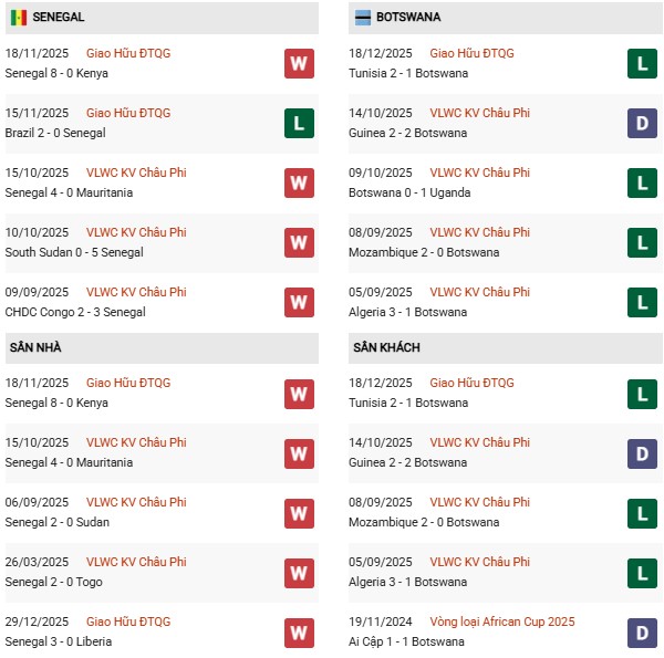 - Senegal toàn thắng cả 2 trận đối đầu Botswana gần đây.