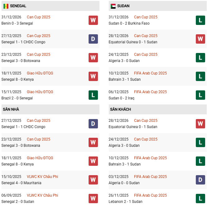 - Senegal thắng 4, hòa 3 trong 7 trận đối đầu Sudan gần đây.