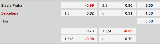 Dưới 4 bàn: 7/9 trận gần đây của Barca chỉ có tối đa 3 bàn. 6/8 trận gần nhất của Slavia Praha số lần lưới rung cũng không lên được tới 4.
