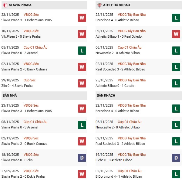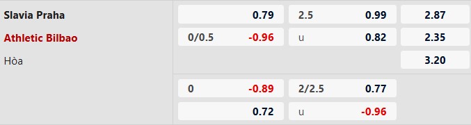 Chiều ngược lại, Athletic Bilbao đang chơi không tốt trên sân khách khi không thắng ở 7 trận gần nhất. Với tình hình hiện tại, rất khó để Bilbao có được thắng lợi trước Slavia Praha. Hòa có lẽ là kết quả mà Bilbao có thể nghĩ tới khi đến Séc.