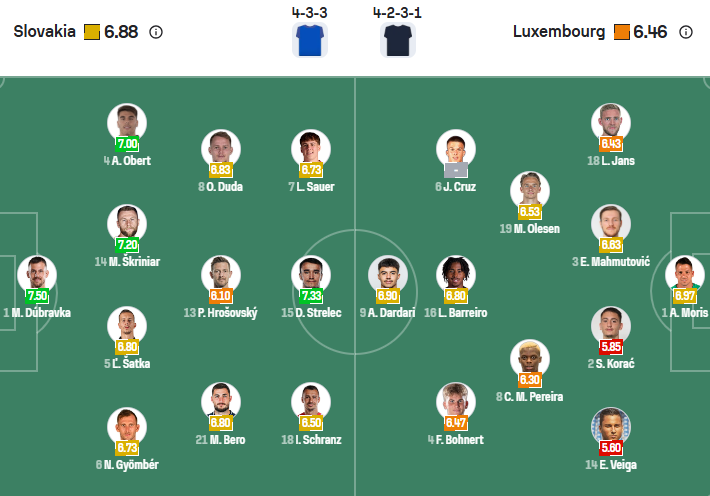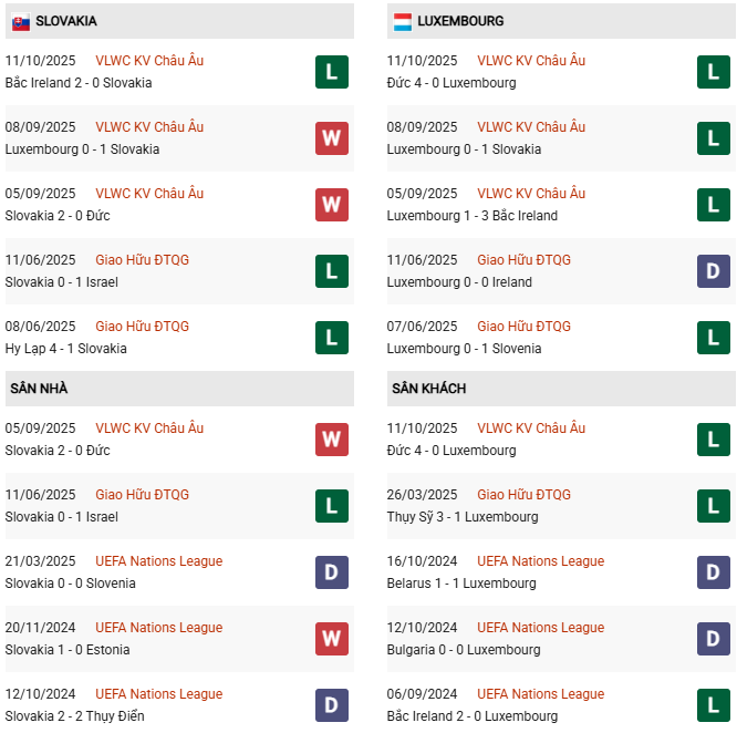 - Trên sân nhà, Slovakia thắng 2, hòa 1 trước Luxembourg.