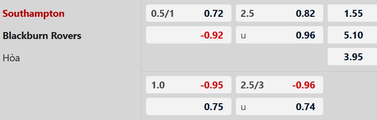 Southampton chấp 3/4 bàn là mức kèo hợp lý với sự chênh lệch giữa hai đội. Với phong độ thăng hoa cùng hàng công hiệu quả, đội chủ nhà hoàn toàn đủ khả năng giành chiến thắng cách biệt trước một Blackburn thiếu ổn định.