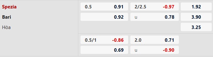 Thông tin tỷ lệ bóng đá Spezia vs Bari: