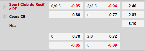Hàng công của Sport Recife vẫn đang gây thất vọng nặng nề khi chỉ ghi được 20 bàn sau 26 vòng đấu. Dù có chút cải thiện gần đây, nhưng thật khó để kỳ vọng họ sẽ tạo ra đột biến trước một đối thủ như Ceara – đội đã giữ sạch lưới ở 2/3 trận gần nhất. Ngoài ra, Ceara có tới 18 trong 26 trận của họ khép lại với dưới 2.5 bàn thắng. Hai lần đối đầu gần nhất giữa hai đội mùa này cũng đều khép lại với tổng bàn thắng dưới 3. Với tỷ lệ kèo tài Xỉu 2 1/4, Xỉu nên được theo cược.