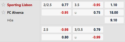 Sporting CP đang thể hiện khả năng phòng ngự cực kỳ chắc chắn, khi giữ sạch lưới tới 6 trong 9 trận gần nhất tại giải quốc nội. Ở chiều ngược lại, hàng công của Alverca lại tỏ ra thiếu hiệu quả, khi tịt ngòi trong 2/3 trận vừa qua. Mức kèo Tài Xỉu được niêm yết ở 3 1/2, lựa chọn Xỉu được xem là phương án phù hợp.
