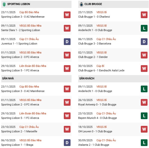 Trong lần chạm trán gần nhất giữa hai đội tại Champions League (ngày 10/12/2024), Club Brugge đã giành chiến thắng 2-1 trên sân nhà. Tuy nhiên, Sporting Lisbon rõ ràng đã học hỏi được nhiều kinh nghiệm từ trận đấu đó và đang có phong độ tốt hơn ở thời điểm hiện tại.