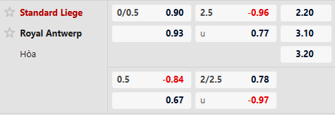 Bên cạnh đó, khả năng xuất hiện bàn thắng trong trận đấu này được đánh giá khá thấp. Điều đó được phản ánh rõ trong thống kê đối đầu với việc 6/7 lần chạm trán gần nhất giữa Standard Liege vs Antwerp đều khép lại mà không có bàn thắng cho cả hai phía. Xu hướng này cũng lặp lại ở 5/7 trận gần đây của Standard Liege. Với tỷ lệ Tài Xỉu 2 1/2, lựa chọn Xỉu được xem là phương án an toàn.