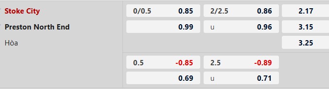 Thông tin tỷ lệ kèo Stoke City vs Preston:
