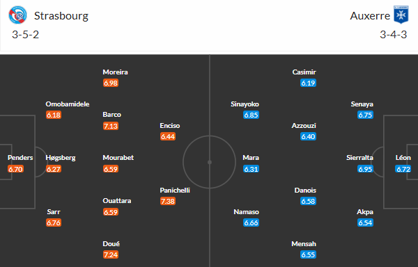 Ngược lại, Auxerre đang gặp nhiều khó khăn về phong độ, với 3 thất bại trong 4 trận gần nhất. Tuy nhiên, đội bóng này lại thi đấu tốt trên sân khách khi thắng 3/4 trận xa nhà gần đây. Hàng công Auxerre thi đấu khá hiệu quả ở những trận sân khách, nhưng hàng thủ lại thường xuyên mắc sai lầm, đặc biệt khi phải đối đầu các đội chủ nhà biết tận dụng lợi thế địa lợi như Strasbourg.