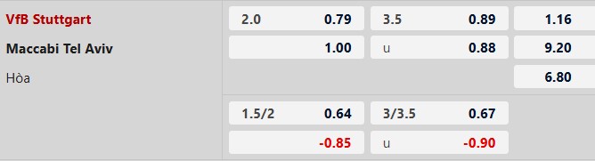 Tối đa 3 bàn thắng: 8/10 trận sân nhà gần đây của Stuttgart đều kết thúc với nhiều nhất 3 bàn thắng được ghi. Với Maccabi Tel Aviv, các chân sút đội khách mới ghi 1 bàn tại vòng phân hạng Europa League và đang tịt ngòi 3 trận liên tiếp tại giải đấu này.