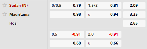 Sudan là đội được đánh giá cao hơn cùng tỷ lệ chấp 1/4 bàn. Sudan đã thắng 2-0 trước Mauritania ở trận lượt đi giữa hai đội dù phải làm khách. Bất bại 10 trận sân nhà gần nhất gồm 5 thắng và 5 hòa, Sudan sáng cửa thắng trận đấu này. Chọn Sudan.