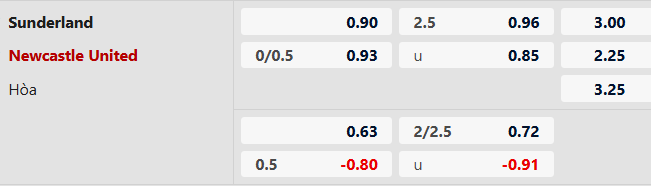 5 trận gần nhất, Sunderland ghi được 6 bàn thắng và thủng lưới 9 bàn. Trong quãng thời gian đó, Newcastle có cho mình 11 bàn thắng và thủng lưới 8 lần. Trung bình 1 trận Sunderland ghi được 1.2 bàn và thua 1.8 bàn, đội khách có 2.2 bàn thắng và thủng lưới 1.6 lần. Với số lượng bàn thắng dồi dào từ Sunderland và Newcastle gần đây, trận đấu tới hứa hẹn sẽ là cuộc rượt đuổi tỷ số bàn thắng. Dự đoán sẽ có nhiều hơn 3 pha lập công xuất hiện.