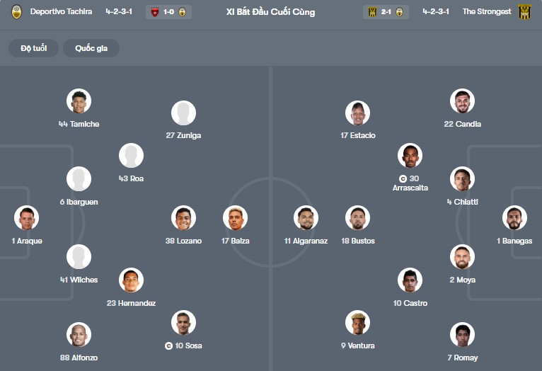 - Tachira thua 1-2 trước The Strongest ở trận đấu lượt đi.